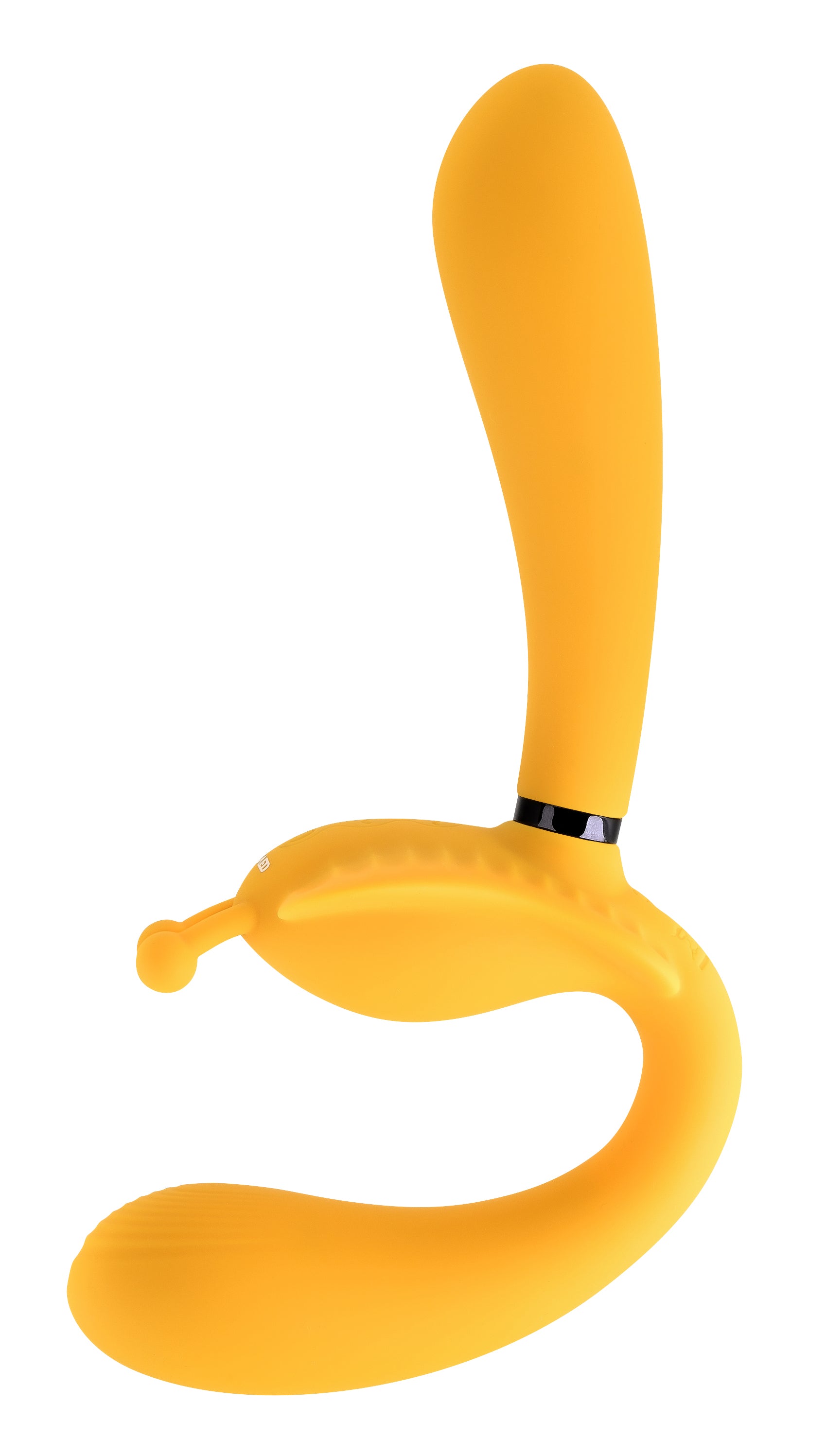 This unique silicone partner toy features 3 shafts, each with their own independently controlled 10-speed motor. A curved, bulbous wearable shaft connects via a flexible elbow to a butterfly-shaped stimulator with wide fluttering wings and hard-working antennae that target erogenous zones beautifully. A third arched shaft with a generous head attaches near the wings for partner play- and can be removed and capped off for solo time. Rechargeable, water submersible and easy to clean.